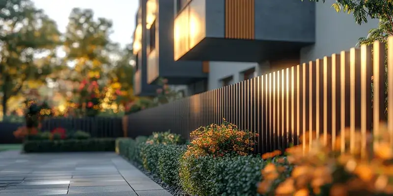 in denen moderne metallene Zäune sowohl Sicherheit als auch Ästhetik vereinten. Ein Beispiel hierfür ist ein neu gebautes Wohnhaus in einer urbanen Umgebung,